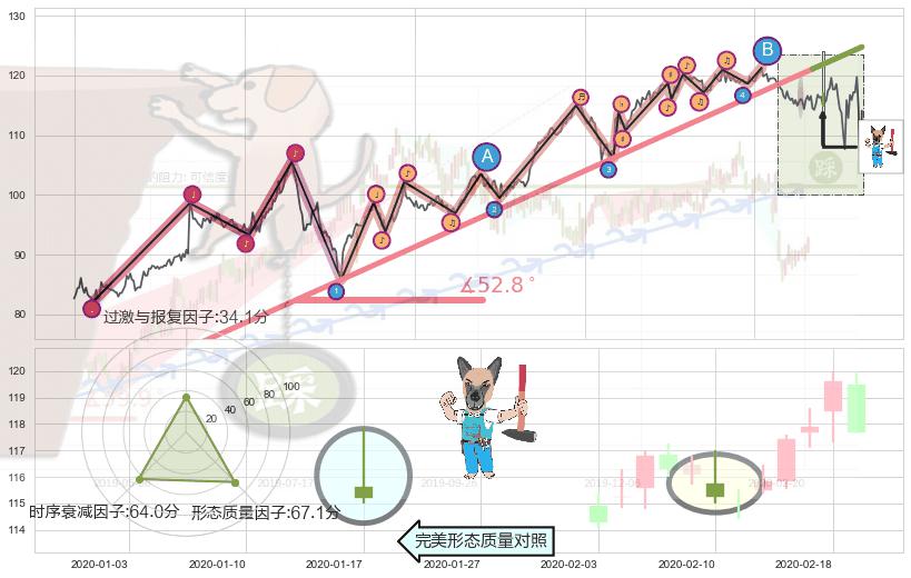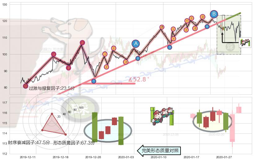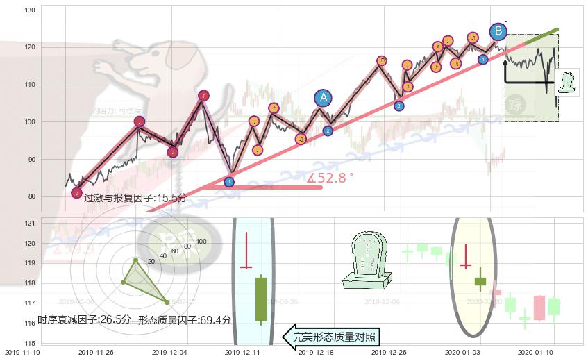 从2018-12-24至2020-01-31,共包含278个交易日,阶段股价上涨30.09%,阶段股价变动位移路程比: 1 : 6,上涨趋势角度: 52.7