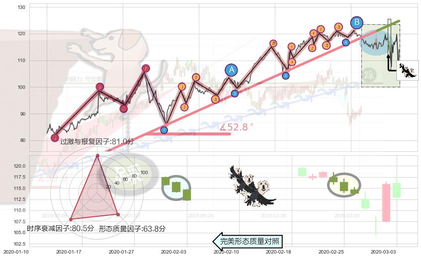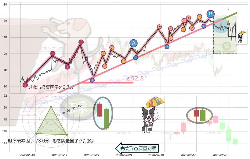 ➢ 🕰 价格走势在2020-02-10至2020-02-24期间形成黄昏之星(夜星),残存影响值:-6.99