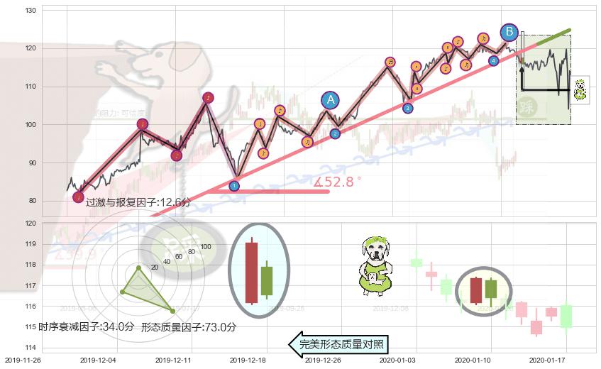 ➢ 🕰 价格走势在2020-01-17至2020-01-24期间形成下降三部曲(降势三鹤),残存影响值:-3.45