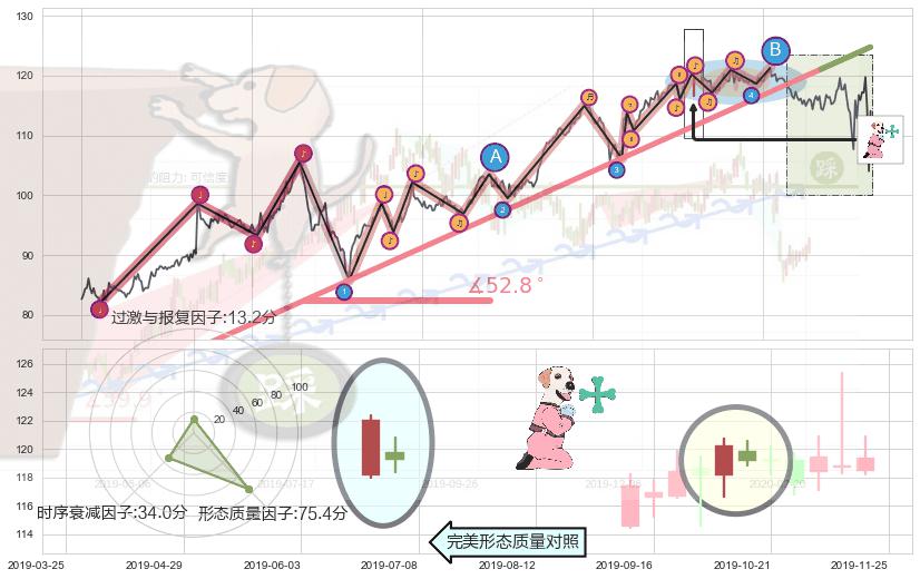 ➢ 2018-05-29-2020-01-31上升趋势存在反转[风险],其原上升趋势的支撑位(124.80)已破位[强阻力信号],原上升趋势角度: 52.8˚