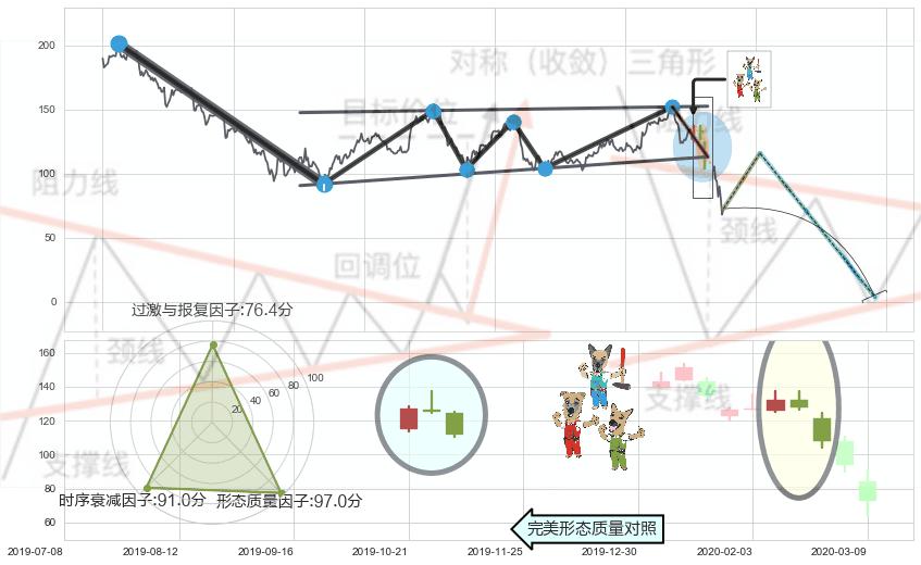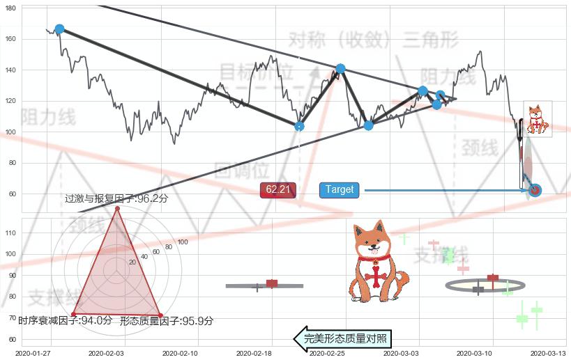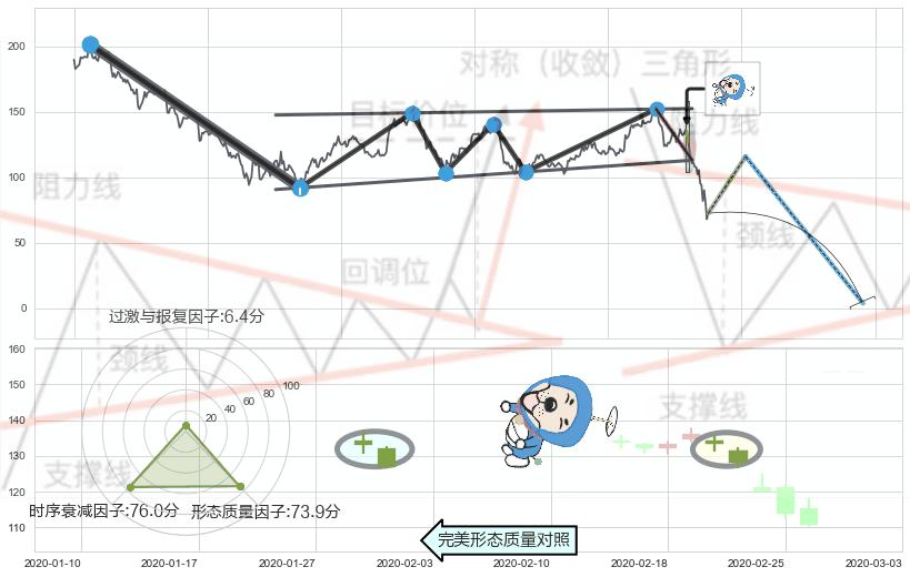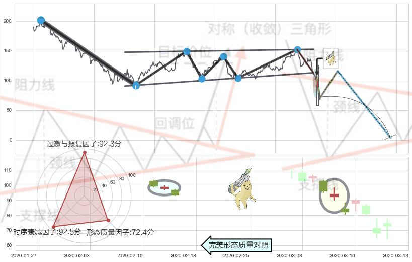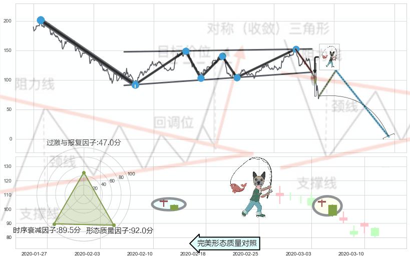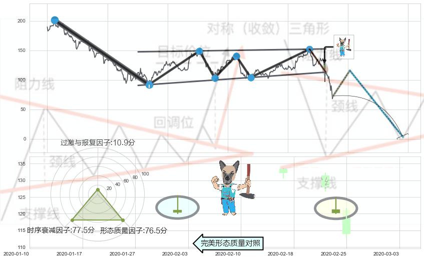 ➢ 下降【对称】三角形整理综合量化分数: 45.13 【偏空】