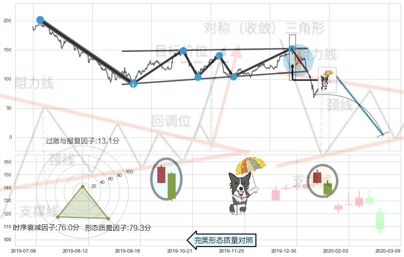 ➢ 🕰 价格走势在2020-03-04至2020-03-05期间形成吊颈线(上吊线),残存影响值:-3.67