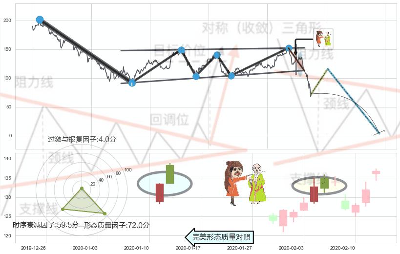 ➢ 下跌螺旋桨 🔜 升旗形支撑破位转换阻力下跌 综合量化分数:46.34 【中性】
