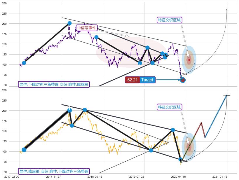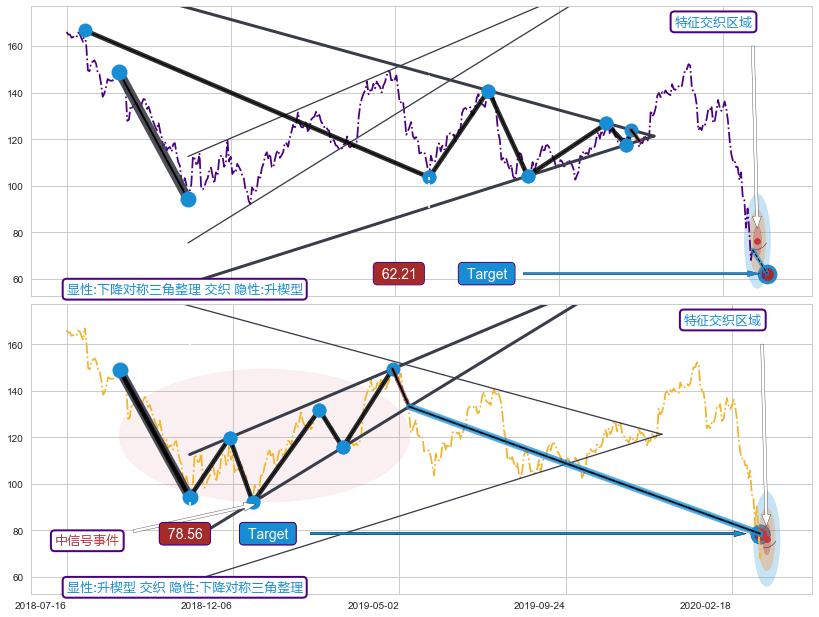 ➢ 下降对称三角整理:猜想下跌target达成后 → 上涨 → 机会信号 → 大趋势均值回复