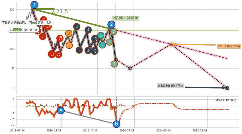 ♘ 在最后的下跌阶段2018-05-10至2020-03-13,存在 持续未破位的阻力位 ,阻力价格147.16,可信任强度57.86%,其距离最后价格72.52相差 +102.92%