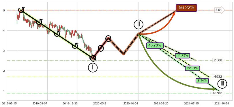 ➣ 大趋势循环浪继续向下概率43.78%