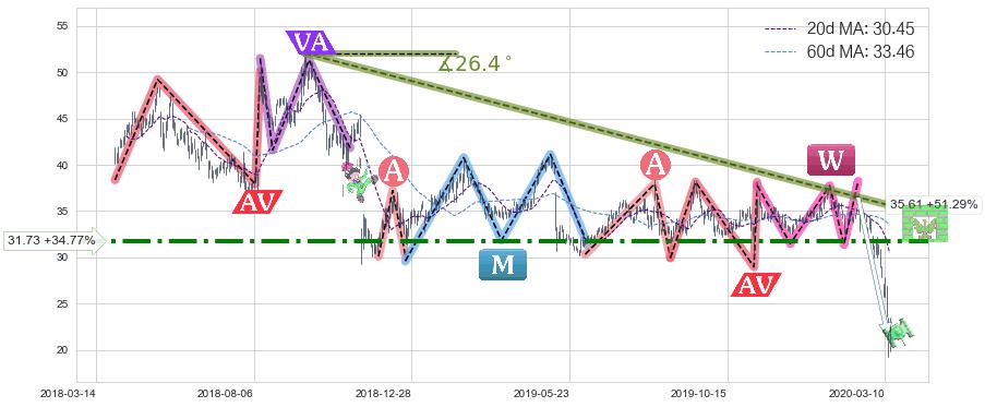 ♘ 阻力价格位31.73,可信任强度84.12%,距离最后交易2020-03-13形成的收盘价格23.54相差 +34.77%