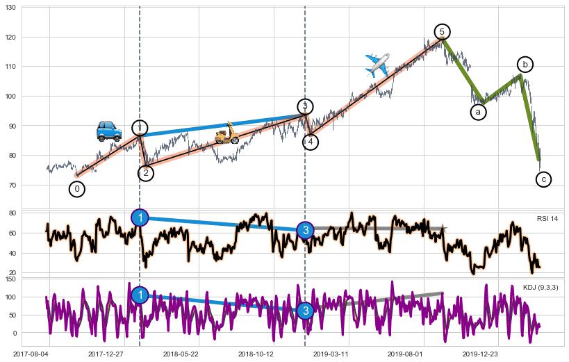 ➣ 波浪理论:猜想击穿破位c点后继续下跌 → 下跌 → 风险信号 → 小趋势跟踪