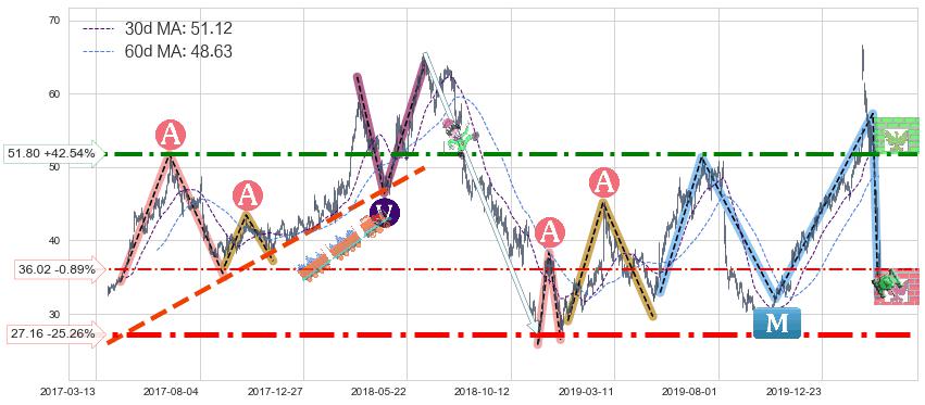 ♘ 阻力价格位51.80,可信任强度78.95%,距离最后交易2020-03-13形成的收盘价格36.34相差 +42.54%
