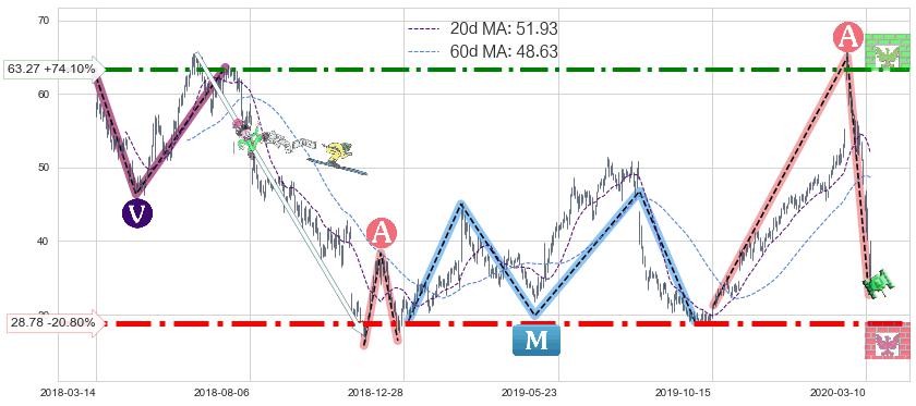 ♘ 支撑价格位28.78,可信任强度96.58%,距离最后交易2020-03-13形成的收盘价格36.34相差 -20.80%