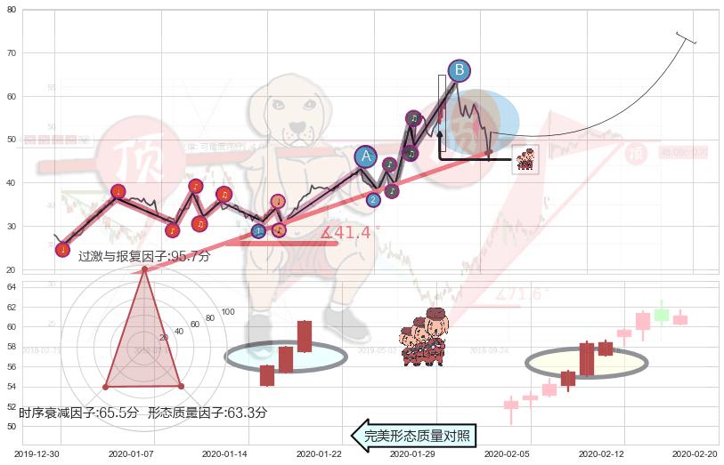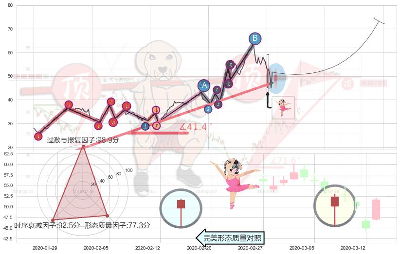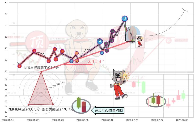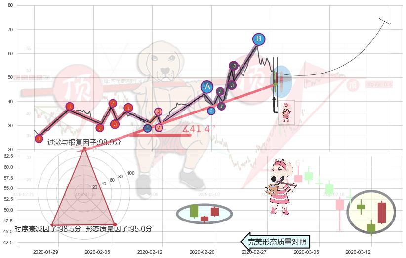 从2019-10-23至2020-03-11,共包含96个交易日,阶段股价上涨56.90%,阶段股价变动位移路程比: 1 : 3,上涨趋势角度: 27.8