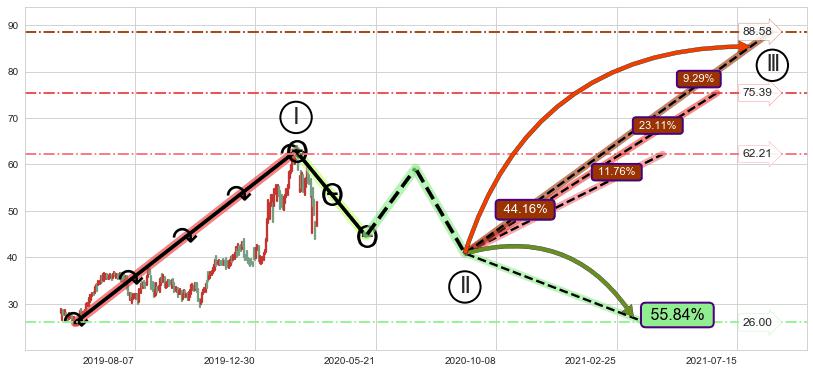 ♘ 阻力价格位62.90,可信任强度55.97%,距离最后交易2020-03-13形成的收盘价格51.68相差 +21.71%