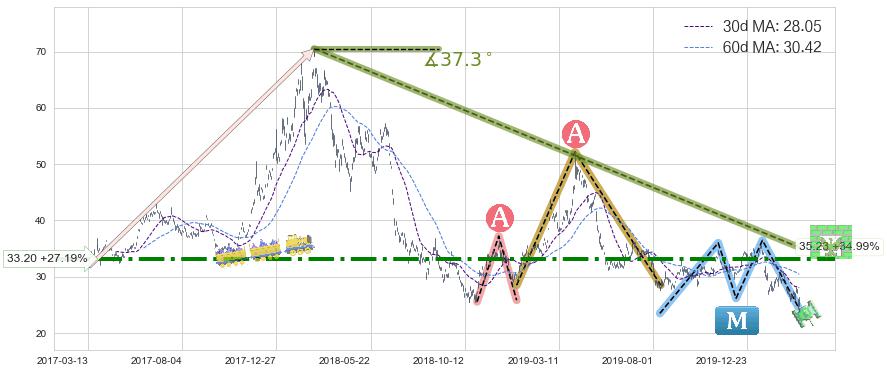♘ 阻力价格位33.20,可信任强度84.74%,距离最后交易2020-03-13形成的收盘价格26.10相差 +27.19%