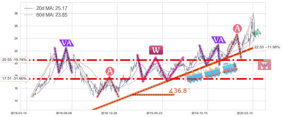 ♘ 支撑价格位20.55,可信任强度94.16%,距离最后交易2020-03-13形成的收盘价格25.60相差 -19.74%