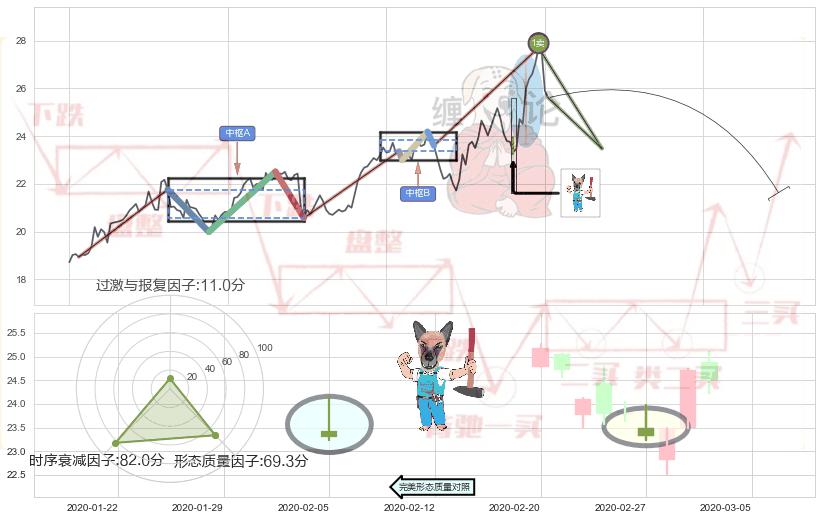 ➣ 【中枢B】:2020-01-06-2020-01-22,中枢由4笔构成,共12交易日, ZG=23.60, ZD=23.36