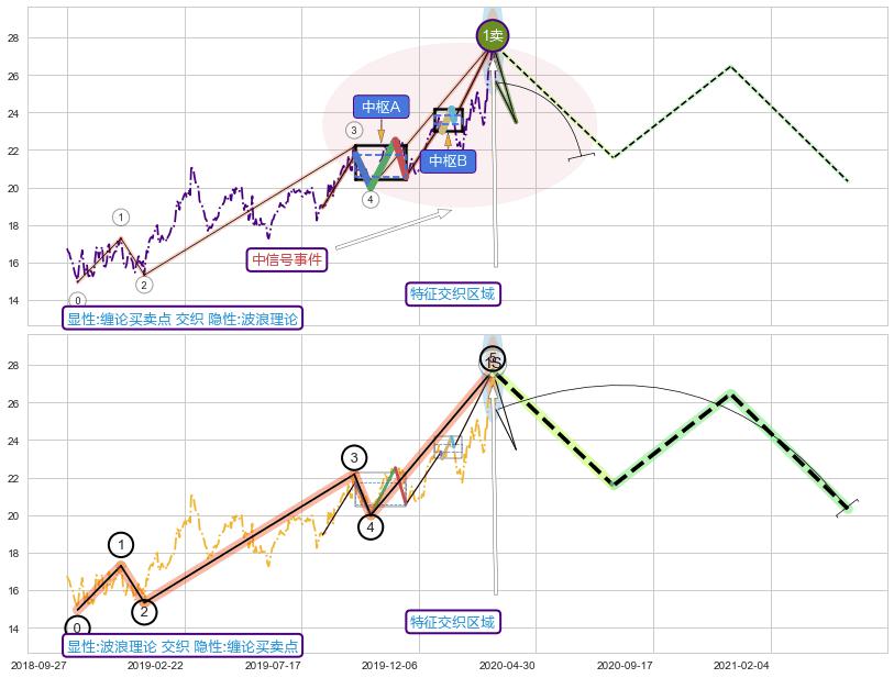 ➣ 缠论买卖点:上升缠中枢AB形成后猜想拐点1卖已到达,猜想后续持续下跌(均值回复)