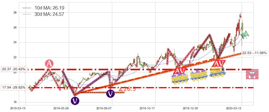 ♘ 支撑价格位20.37,可信任强度94.80%,距离最后交易2020-03-13形成的收盘价格25.60相差 -20.42%