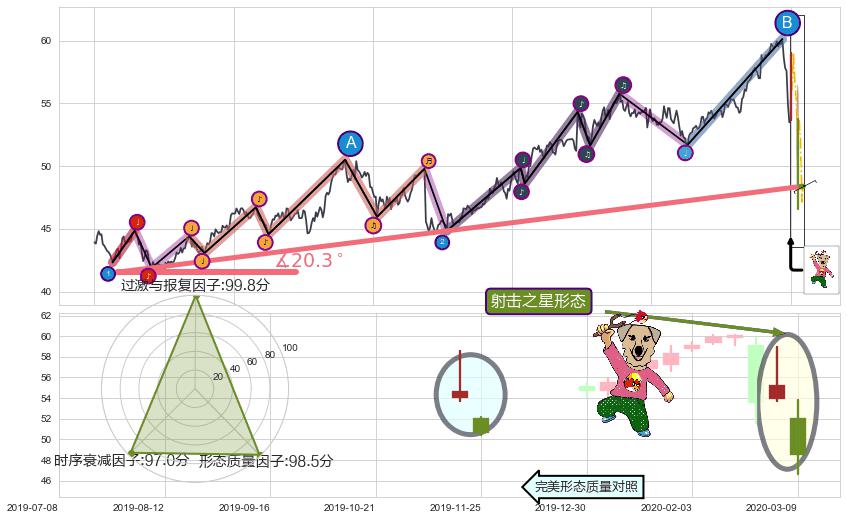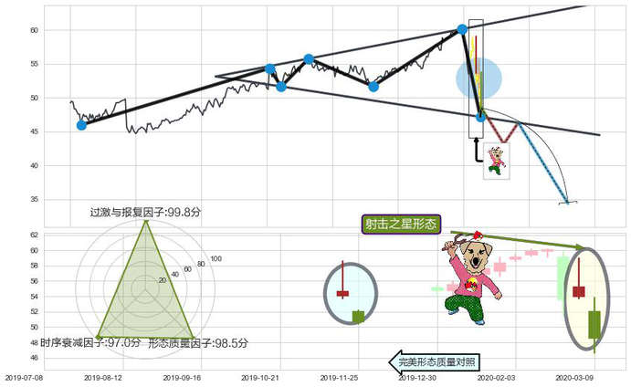 ➢ 🕰 价格走势在2020-03-02至2020-03-09期间形成射击之星形态,残存影响值:-8.88