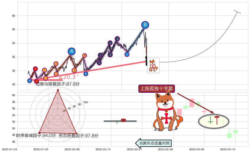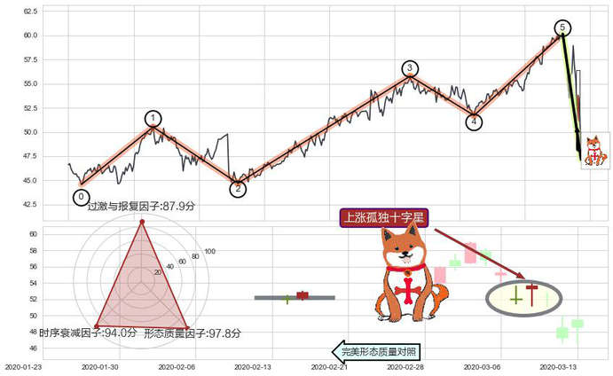 ➢ 🕰 价格走势在2020-03-09至2020-03-10期间形成上涨孤独十字星,残存影响值:8.42