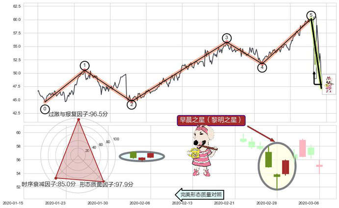➢ 🕰 价格走势在2020-02-27至2020-03-02期间形成早晨之星(黎明之星),残存影响值:6.12