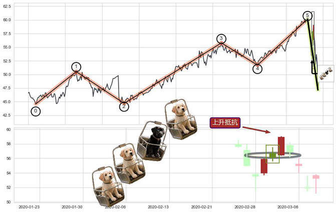 ➢ 🕰 价格走势在2020-03-02至2020-03-04期间形成上升抵抗,残存影响值:8.83