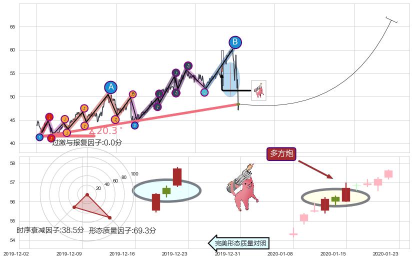 ➢ 🕰 价格走势在2020-01-13至2020-01-15期间形成多方炮,残存影响值:2.18
