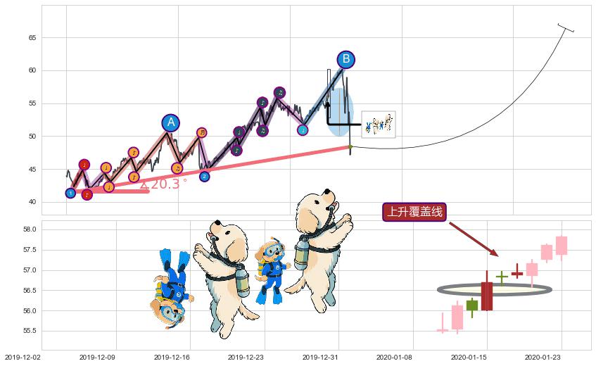 ➢ 🕰 价格走势在2020-01-14至2020-01-17期间形成上升覆盖线,残存影响值:1.38