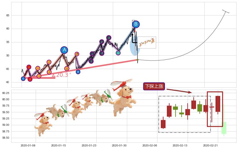 ➢ 🕰 价格走势在2020-02-07至2020-02-21期间形成下探上涨,残存影响值:2.53