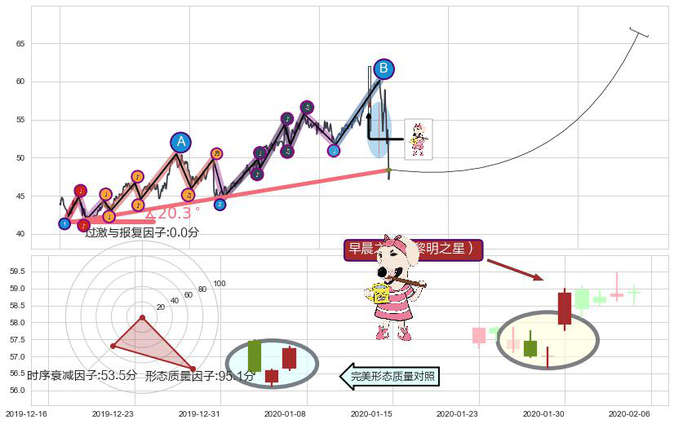 ➢ 🕰 价格走势在2020-01-28至2020-01-30期间形成早晨之星(黎明之星),残存影响值:2.27