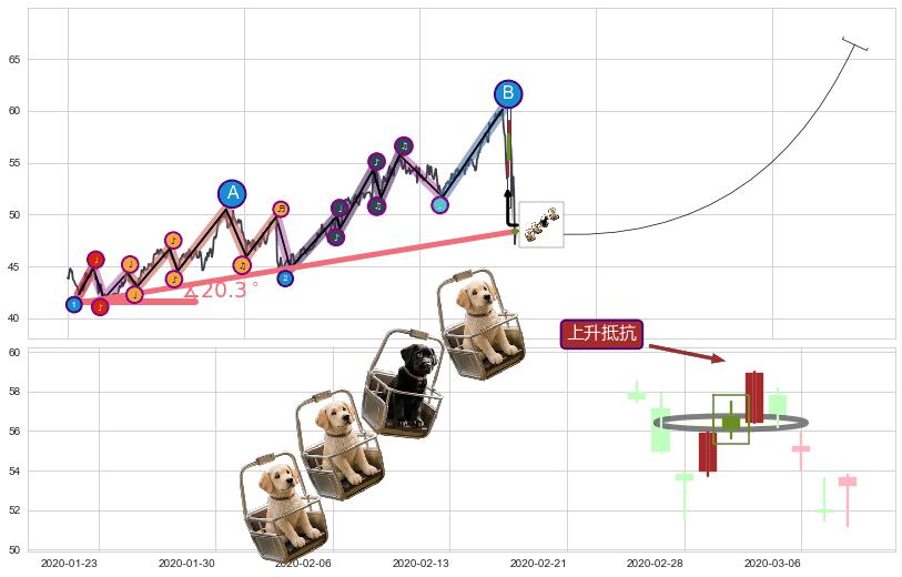 ➣ 冉冉上升|稳步上涨:冉冉上升|稳步上涨 信号为看多信号,后市看涨, 阳线数量居多,可有阴线