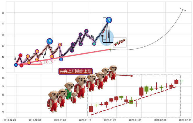 ➢ 🕰 价格走势在2020-01-15至2020-02-10期间形成冉冉上升|稳步上涨,残存影响值:2.13