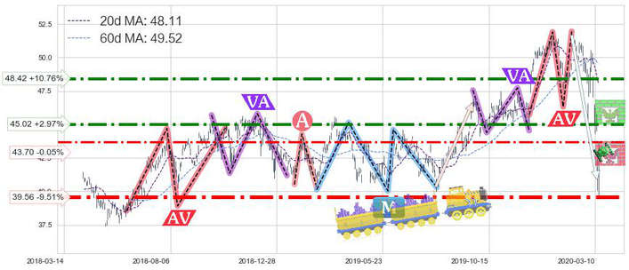 ♘ 支撑价格位43.70,可信任强度56.69%,距离最后交易2020-03-13形成的收盘价格43.72相差 -0.05%