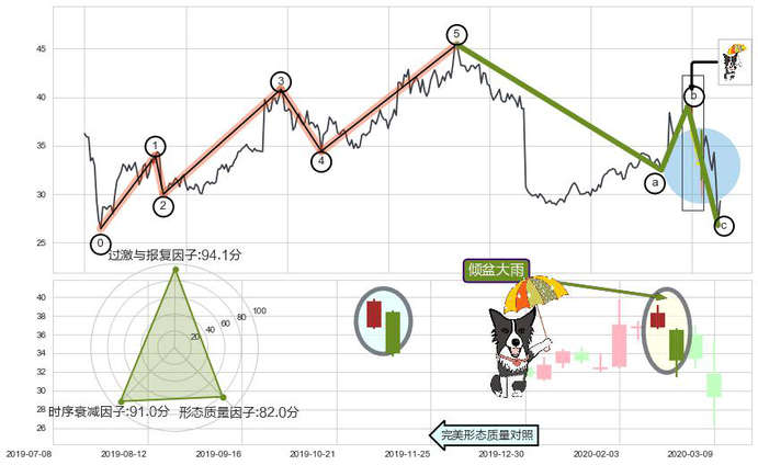 ➢ 🕰 价格走势在2020-03-13至2020-03-13期间形成锤头线(锤子线),残存影响值:7.17