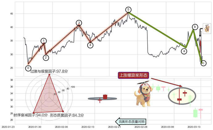 ➢ 上涨螺旋桨形态 🔜 波浪理论c点回调终止反转上涨 综合量化分数:54.46 【偏多】