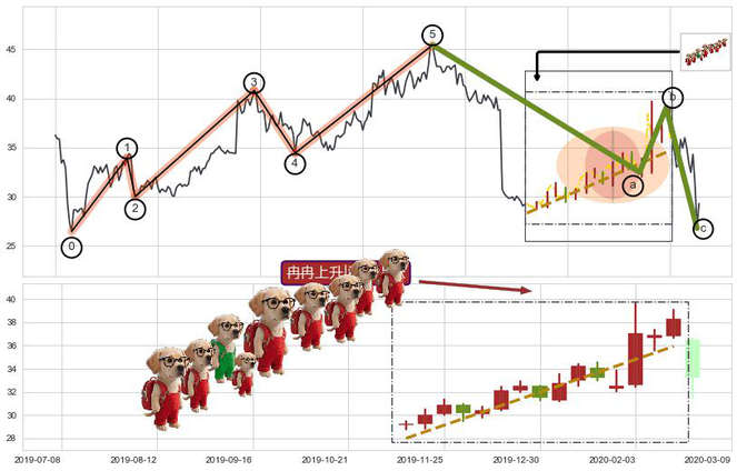 ➢ 波浪理论:猜想达到c点后小回调终止反转上涨 → 上涨 → 【拐点】临近 → 阶段均值回复结束后继续大周期趋势跟踪