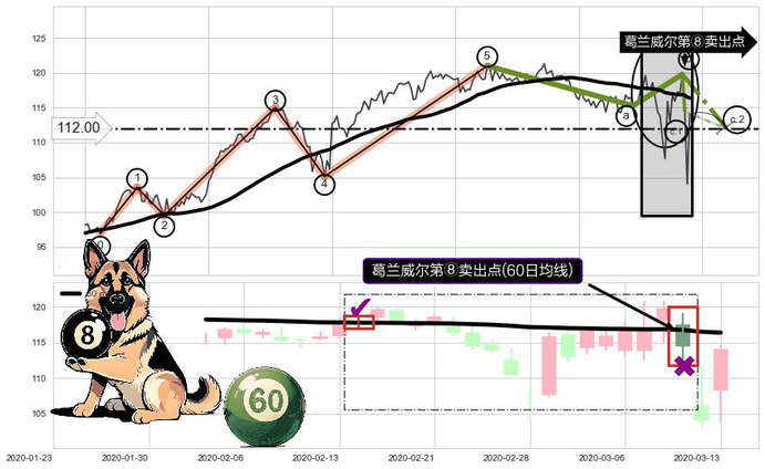 ➣ 🕰 价格走势在2020-02-14至2020-03-13期间形成葛兰威尔第⑧卖出点,残存影响值:-0.01
