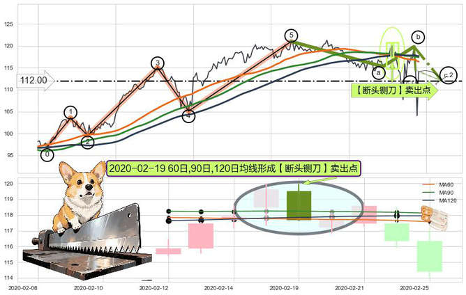 ➣ 🕰 价格走势在2020-02-13至2020-02-24期间形成【断头铡刀】卖出点,残存影响值:-39.13