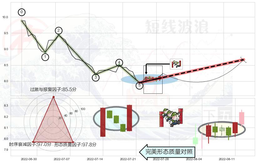 ➢ 🕰 价格走势在2022-08-05至2022-08-11期间形成上升三部曲(升势三鸦),残存影响值:4.87