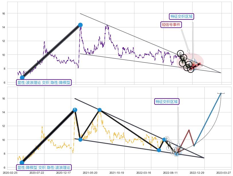 ➢ 波浪理论属【短级别信号事件】降楔型属【长级别信号事件】长短周期组合信号事件, 短长事件长度比7.34%
