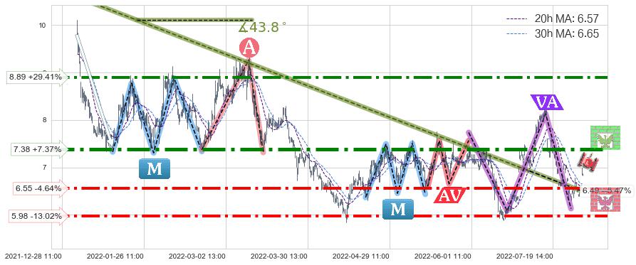 ♞ 20小时均线:6.57,30小时均线:6.65→ 快线<慢线