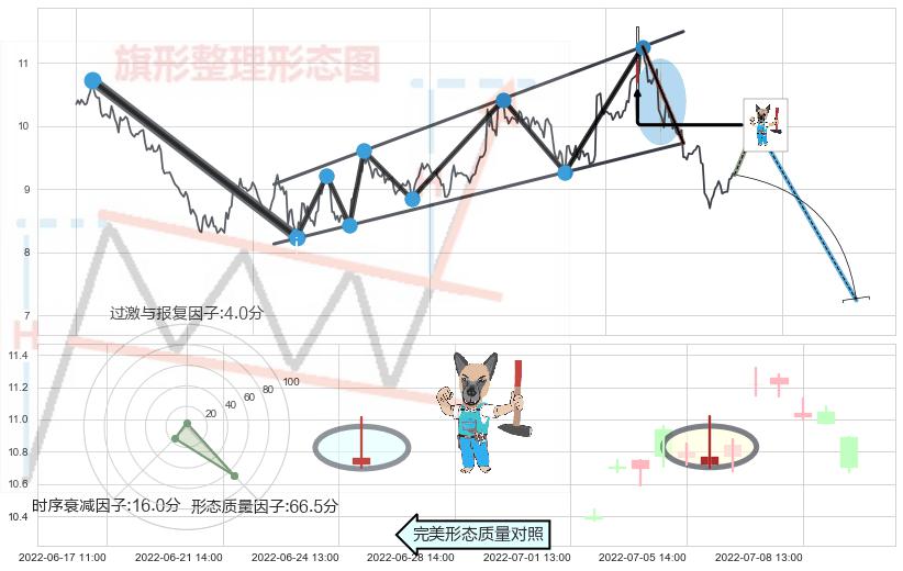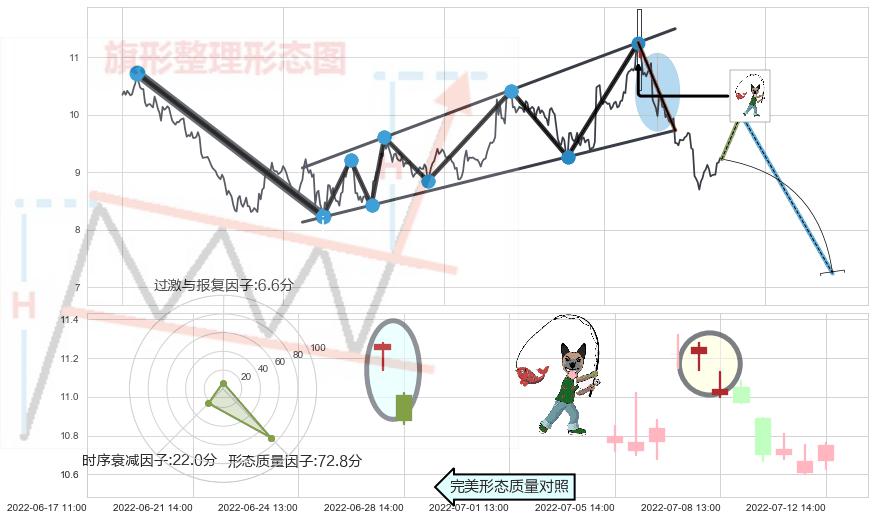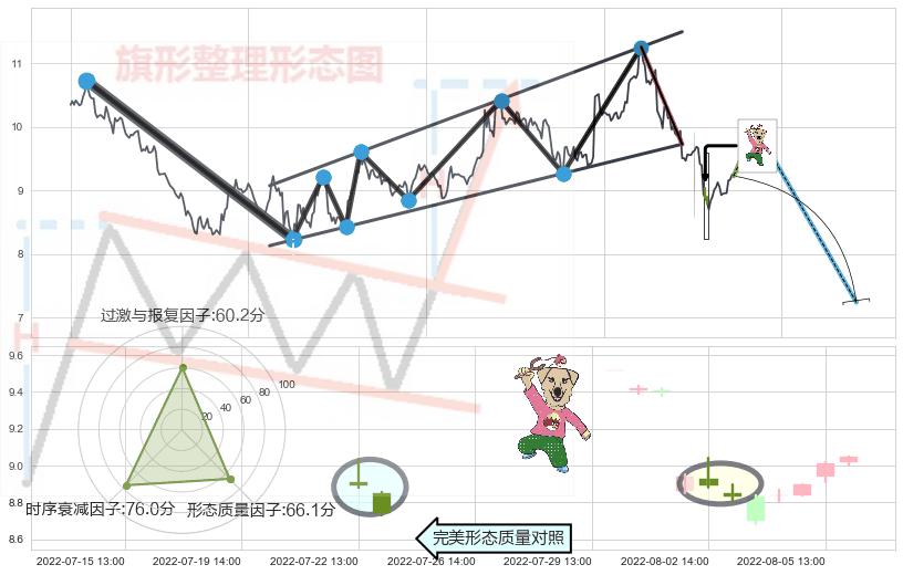 ➢ 看跌(高位倒锤头)流星线 🔜 升旗形支撑破位转换阻力下跌 综合量化分数:45.80 【偏空】
