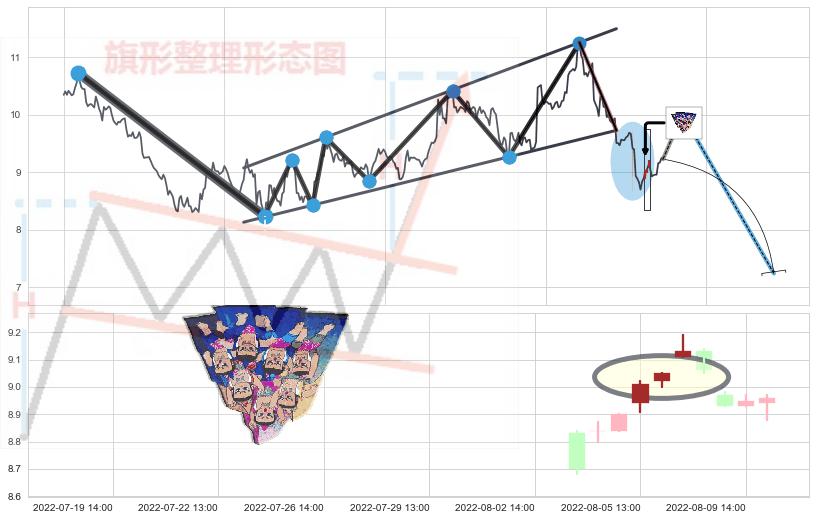 ➣ 升旗形:关键支撑位被击穿 → 猜想形成趋势持续下跌 → 风险信号 → 大趋势均值回复