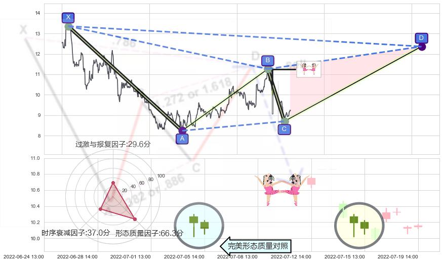 ➣ BC回撤位置在AB的84.8%,符合形态要求