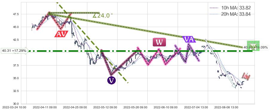 2022-04-20: 时域附近第一阻力位40.31持续的对下跌趋势进行阻拦,有效地放缓了下跌的速度。