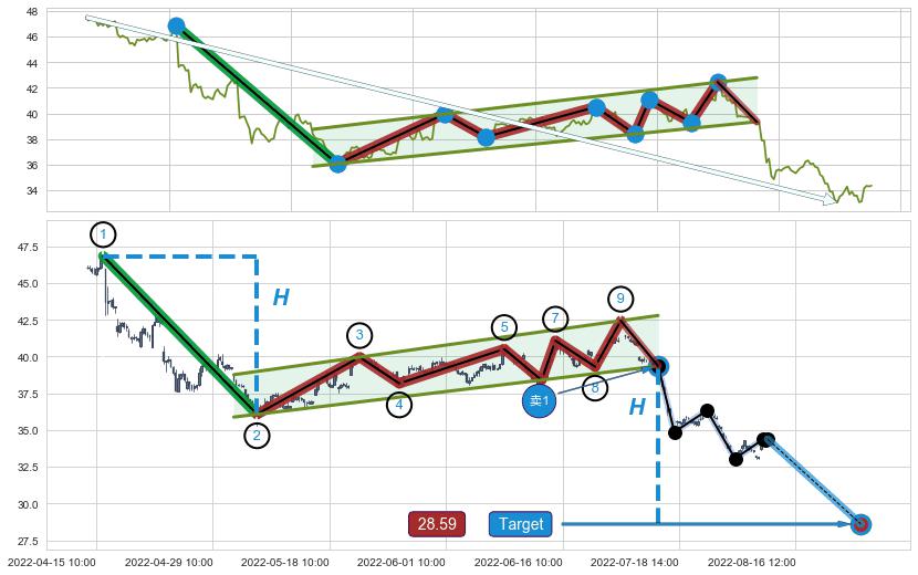 ➣ 最小中继整理跌幅→𝐇: 10.76 (𝐇旗杆的长度:旗杆起点→顶点)