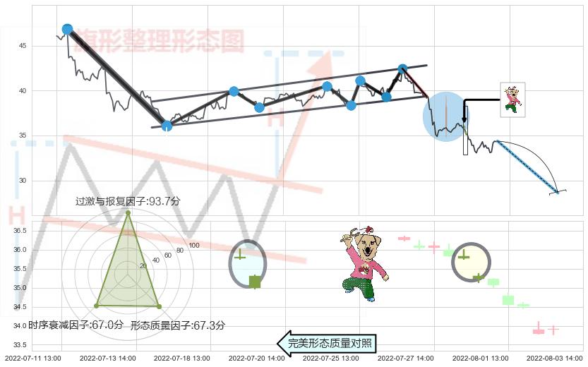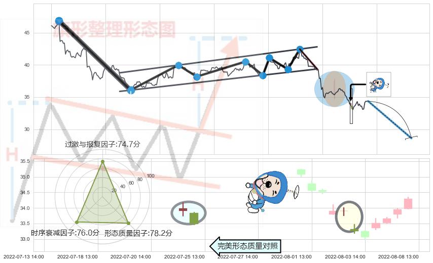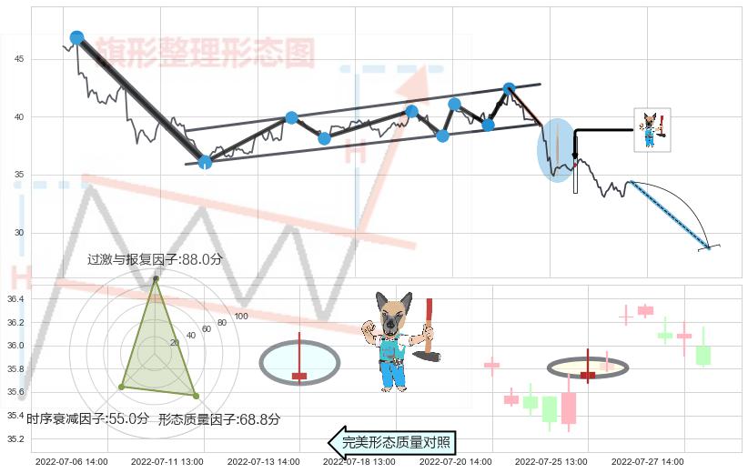 ➢ 射击之星形态 🔜 升旗形支撑破位转换阻力下跌 综合量化分数:41.47 【偏空】