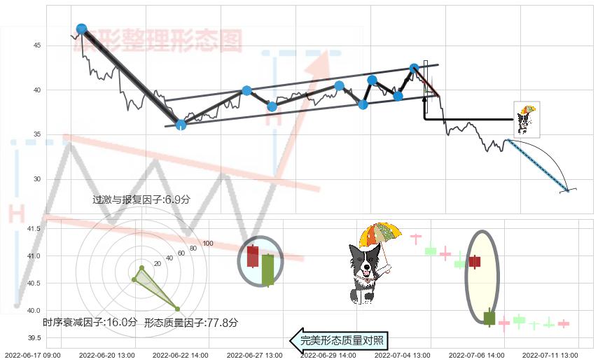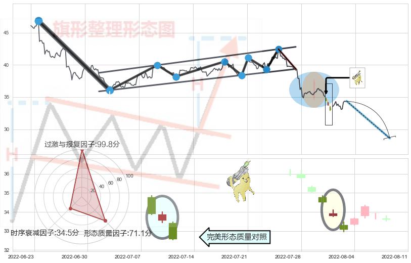 ➢ 看跌(高位倒锤头)流星线 🔜 升旗形支撑破位转换阻力下跌 综合量化分数:42.64 【偏空】