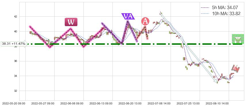 ♘ 阻力价格位38.31,可信任强度93.72%,距离最后交易2022-08-12 14:00形成的收盘价格34.37相差 +11.47%