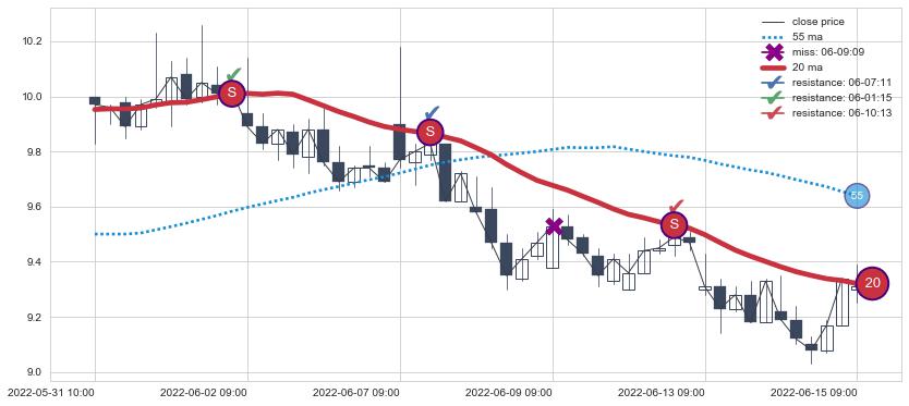 📝 多条均线形成死叉后走势最低价格达到: 8.14