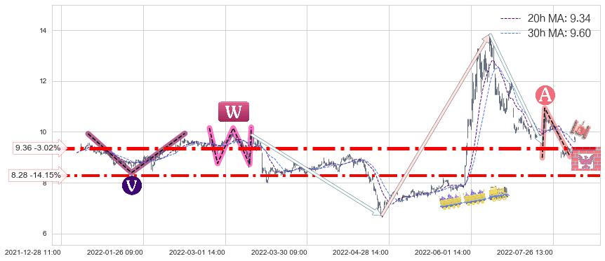 ♞ 20小时均线:9.34,30小时均线:9.60→ 快线<慢线